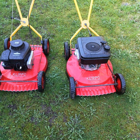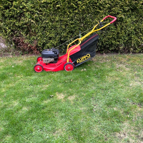 Klippo Champion gräsklippare med bensinmotor. Nyservad med ny olja, tändstift, luftfilter, slipad kniv. Redo för våren!