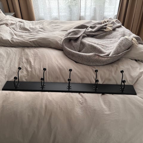 House Doctor Pipes klädhängare i svart metall med detaljer i metallfärg. Väggmonterad modell med flera krokar i olika nivåer som ger plats för jackor, kappor, väskor och accessoarer. Passar i hall, sovrum eller andra utrymmen där extra upphängningsmöjligheter behövs.