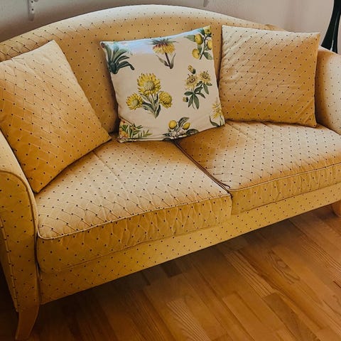 Skänker bort en soffgrupp med 2st 2-sits soffor, mått ca 2 meter långa. Har stått i sommarstugan, använda men har mycket kvar att ge. Beige botten och ljusa blommor på.