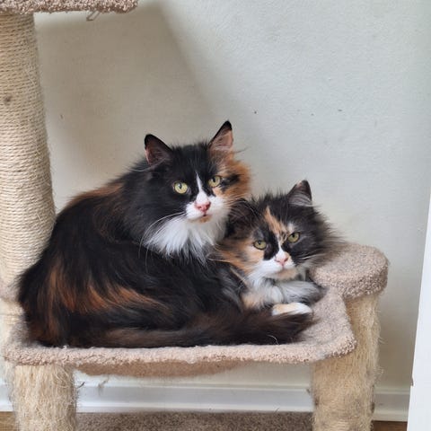 Båda katterna har mild njursvikt som behandlas med njurfoder samt årliga blodprover. De har även tandsten.