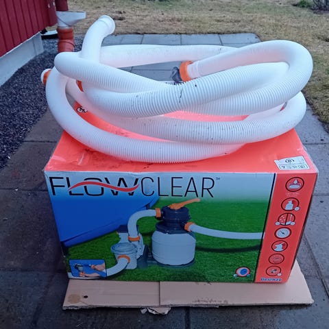 Bestway Flowclear poolvärmare. Levereras i originalförpackning enligt bild. Avsedd för användning med ovanmarkspooler. Ansluts till poolens slangsystem för att värma poolen.