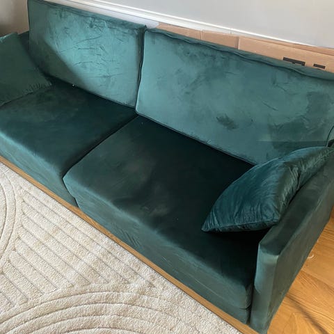 Har även ett grått tyg som går att byta ut som inte är något fel på, kanske någon fläck men går bort.
