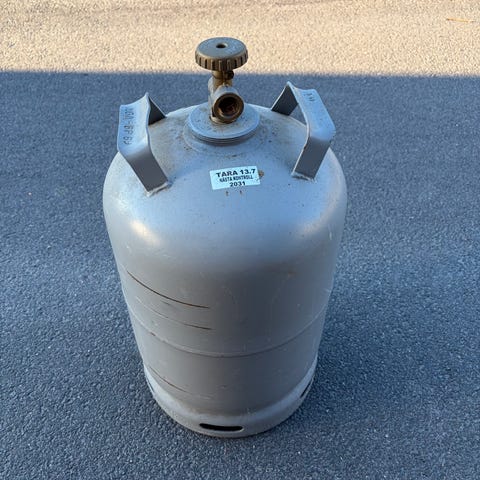 Gasolflaska blå för 2 kg gasol. Kan bytas mot en fylld flaska på t ex bensinmack - då betalar man endast för gasolen.