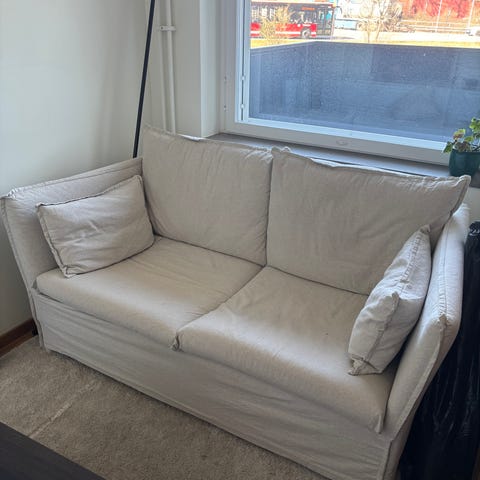Säljer min soffa pga flytt till ny lägenhet, är i använt skick men fungerar fortfarande! Inga fläckar på kuddarna eller liknande på soffansa framdel, en liten fläck på bakre ryggen men den sidan står ändå oftast mot en vägg.