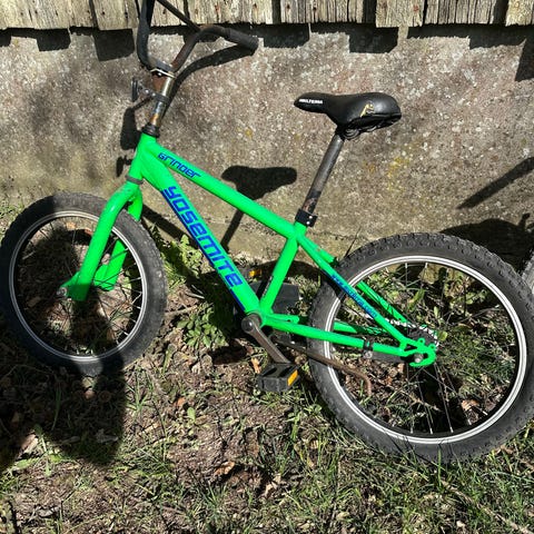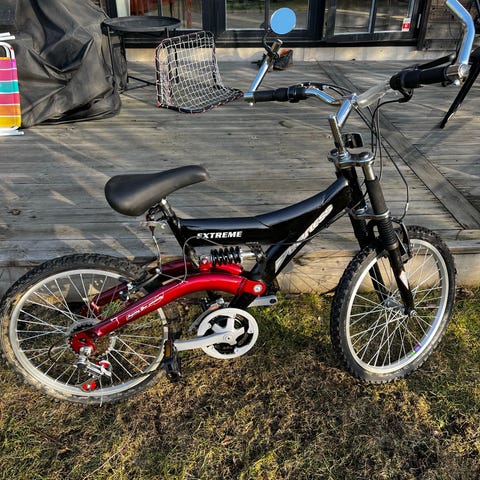 Barn-BMX med hand- och fotbroms och stöd.