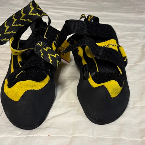 Går att fråga om att köpa styckvis också! Skorna ser lite dammiga ut - är från krita till klättringen - men väldigt sparsamt använda!