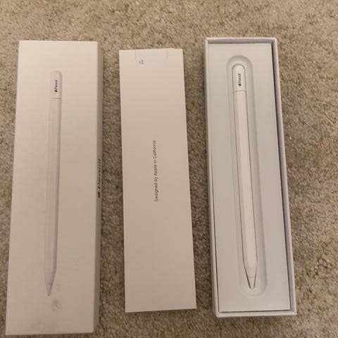 Apple Pencil digital penna i vit färg. Pekpenna avsedd för användning med kompatibla iPad-modeller. Levereras i originalförpackning enligt bild. Laddas via Lightning-kontakt och har tryckkänslig spets för precis inmatning, ritning och anteckningar på skärm.