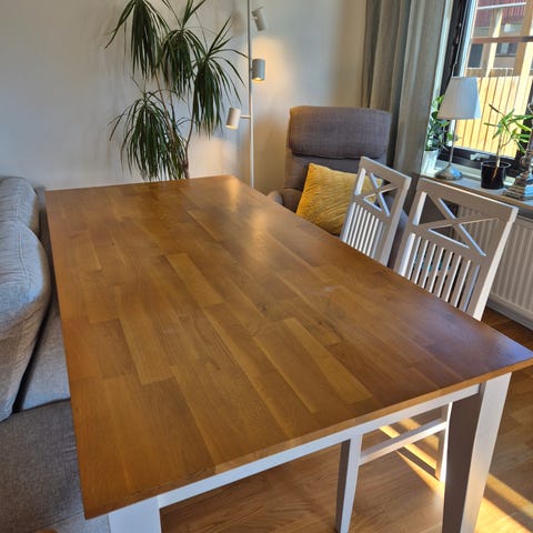 Matgrupp, bord 180x90 cm inkl 4 stolar
