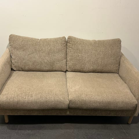 Madison 2-sits soffa i variant lux med tyget Stipa grey. Ben i vitbetsad ek. Soffan är i väldigt bra skick, står i ett djur- och rökfritt hem.