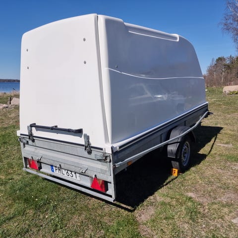 Personbilsläp med kåpa.