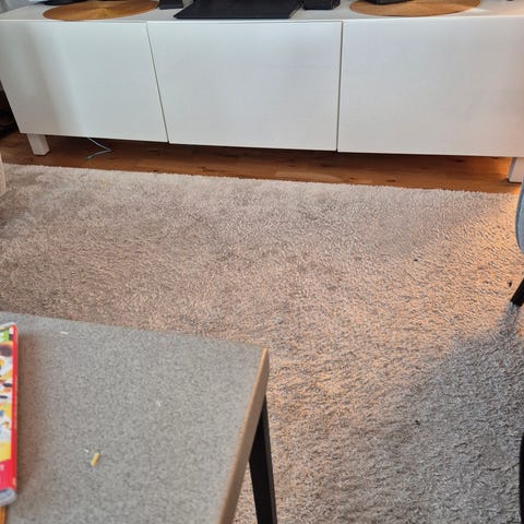 Materialet är hårt och väger mycket, förmodligen gjort av päronträd. Verkar vara invändig lack i många lager. En hyllplan i mitten och två flyttbara hyllor vardera bakom dörrarna. Finns hål bakom för sladdar till mediautrustning. Två starka personer behövs för att bära:). Ingen bärhjälp kan erbjudas. Finns även ett skåp och sängbord i samma stil som kan köpas tillsammans för ett bättre pris.