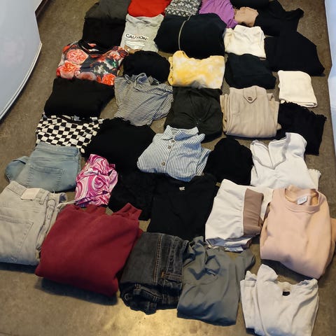 Storlekarna är mellan M-L, någon enstaka xl kan förekomma. Vissa plagg är nya med lapp.