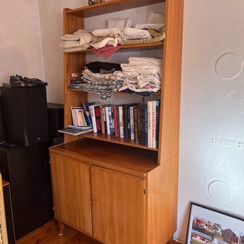 Mycket fin 50-tals hylla designad av Yngve Ekström vid namn Krus. Möbeln är i superfint skick och inga skador finns på det. Hör av er vid frågor!