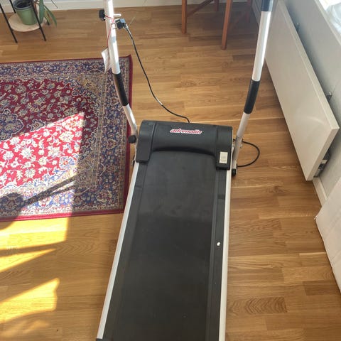 Adrenalin löpband i svart utförande. Löpbandet har digital display med hastighetsreglage, start- och stoppknappar samt säkerhetsnyckel. Konstruktionen är hopfällbar för enklare förvaring och har handtag på sidorna för stöd under träning. Passar för gång och lättare löpning i hemmet.
