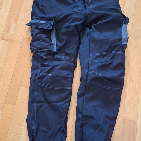 Malung - Sweden, MC-huset, motocrossbyxor i gul och blå färg. Byxorna har förstärkta och vadderade partier över knän, höfter och bak för extra skydd. Dragkedjor finns nedtill på benen för enklare av- och påtagning. Lämpliga för motocross eller liknande motorsportaktiviteter. Originella crossbyxor som passar till en 4-5-åring ca. Midjemått är ca 60 cm och längd är ca 75 cm.