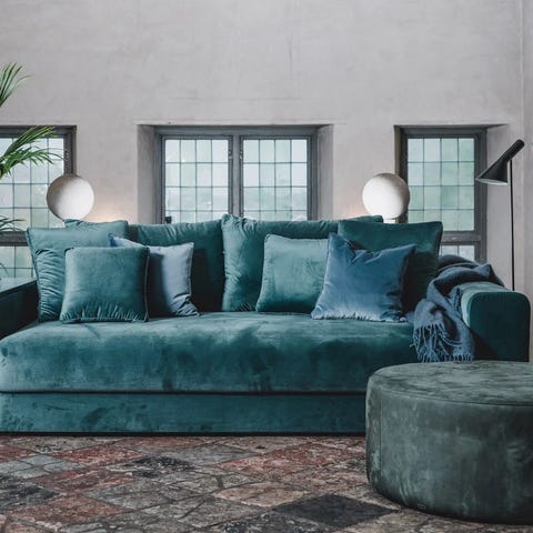 Säljer vår djupa bäddsoffa Sweef Björnen på grund av ommöblering. Soffan är klädd i sammetstyg och färgen på den är Salvador Turkos 6. 6 kuddar i olika storlekar medföljer.