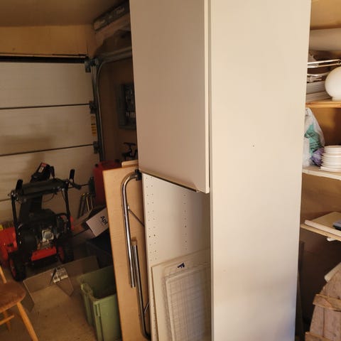 Överskåpet och själva garderoben itusågad för att få den ur rummet