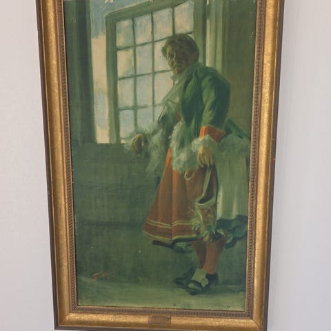 Säljer en karaktärsfull oljemålning på duk med ett klassiskt och historiskt motiv. En tavla med fin historik som har bevarats väl genom åren.