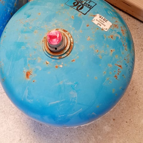 Gasol och syrekärra. Hjul fattas
