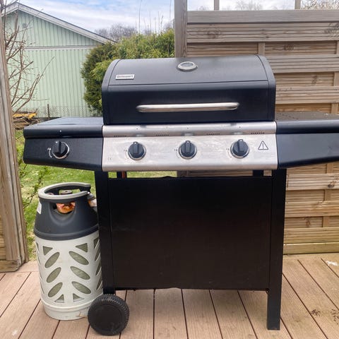 Parasoll 250cm med stenfot, gasolgrill, luftkompressor, inlines