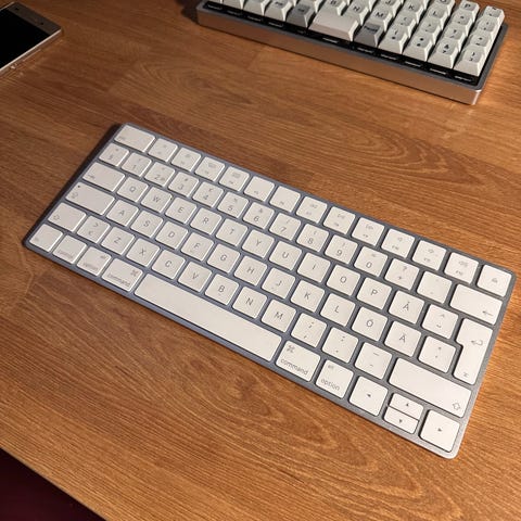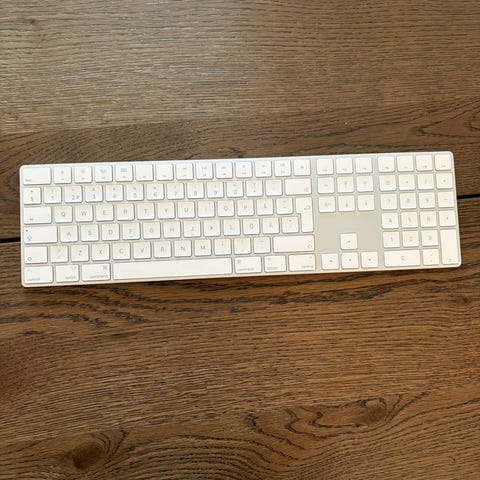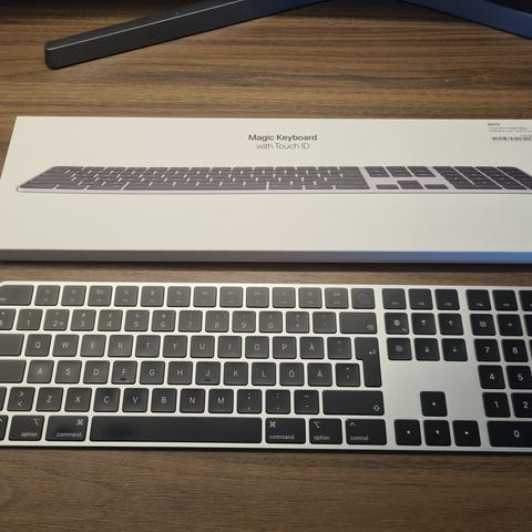 Säljer mitt Apple Magic Keyboard, full size med numeriskt tangentbord och Lightning-kontakt. Funkar felfritt och knappt använt.