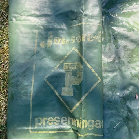 Grön presenning i fint skick från biltema 600g / m2. Alltså deras tjockaste pressening. 7*5 meter.