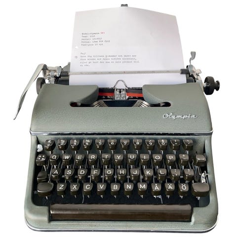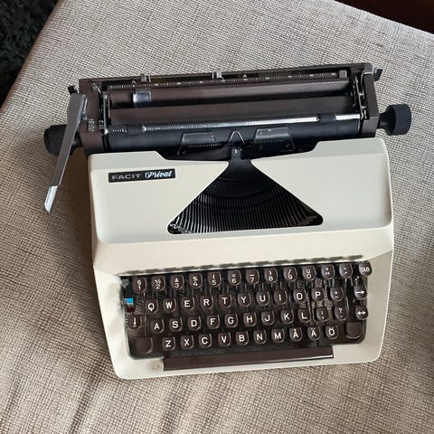 Säljer nu en fantastisk Remington Rand Quiet-Riter från 1950-talet. Detta är en maskin för dig som uppskattar kvalitet och en genuin skrivkänsla. Modellen är vida känd för sin mjuka mekanik och ovanligt tysta gång, vilket gör den till en fröjd att skriva på.