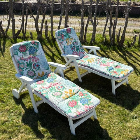 2st GEDIGNA DÄCKSTOLAR TRÄ MED DYNOR