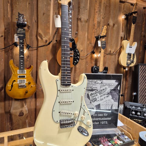 John Mayer Signature Stratocaster 2014 är byggd i massiv al i Olympic White finish.