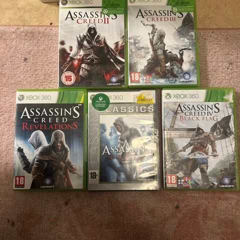 Ubisoft Assassin's Creed Xbox 360 spel. Innehåller 3 spel skivor i metallfodral med motiv från Assassin's Creed-serien. Avsett för Xbox 360-konsol.