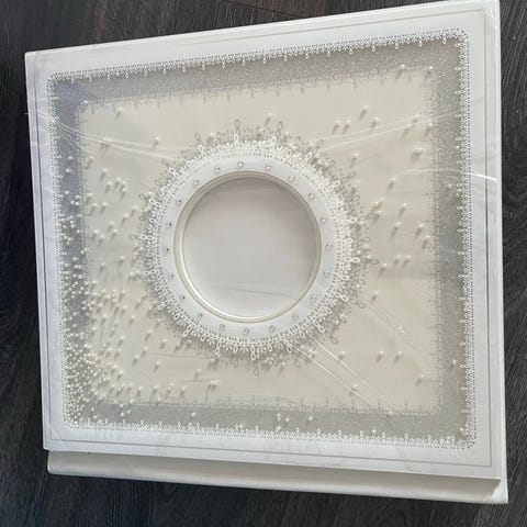 Fotoalbum med hårt omslag i silverfärgat konstläder med präglat mönster. Omslaget har en liten fyrkantig öppning på framsidan för eget foto. Albumet är kvadratiskt och har rygg med förstärkta kanter. Passar för förvaring och organisering av fotografier och minnen i hemmet.