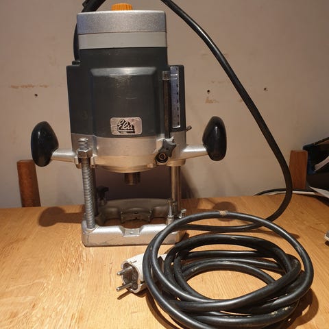 Kraftfull handöverfräs för trä med varvtalsreglering. Spindellåsning för snabbt byte av fräsar.