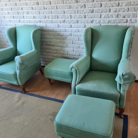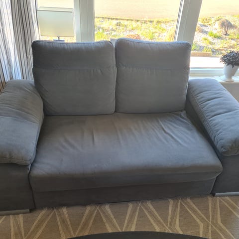 Bortskänkes: antik soffa och vit bokhylla