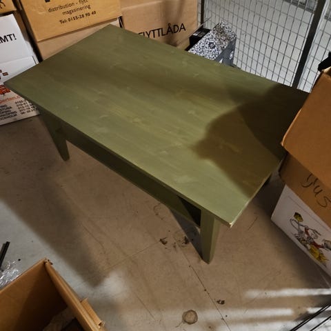 Det stora bordet 0.75 cm högt 0.47 cm. Lilla bordet 0.46 cm högt 0.45 cm.Köpt på Mio möbler i år 2026. Finns i Eskilstuna och hämtas där.