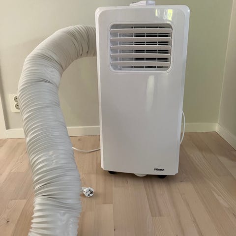Argo portabel luftkonditionering AC vit, komplett med slang och fjärrkontroll. Står på hjul vilket gör den lätt att flytta mellan olika rum