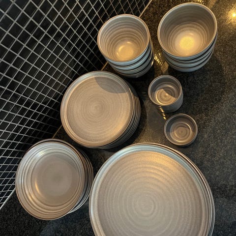 Rusta servis med tallrikar (27cm), assietter (21cm) och miniskålar (8,5cm)