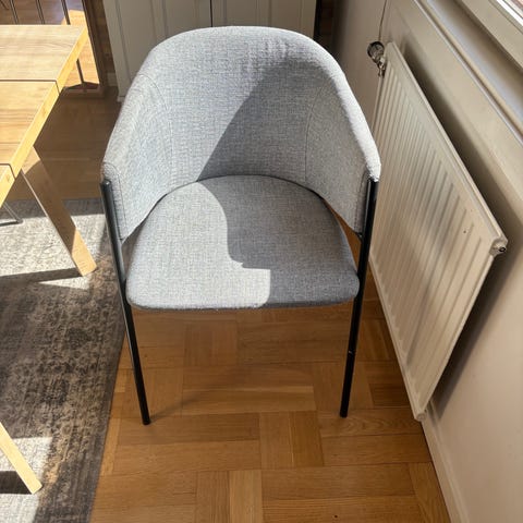 Säljer 4 matstolar. Använda i endast 10 månader, i nästan nyskick utan märken eller skador. Säljes då färgen inte passar vårt kök. Hämtas på plats.