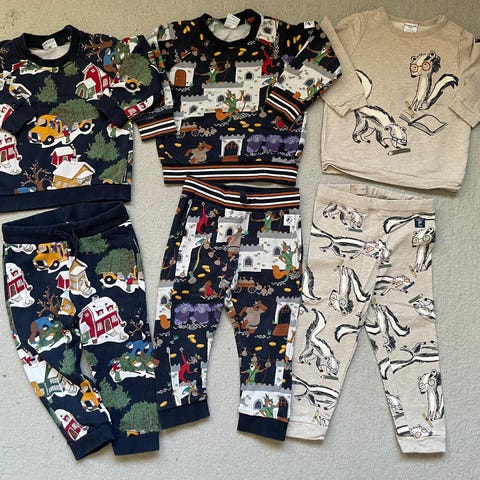 Säljer ett set med två byxor, en hoodie och en tröja.