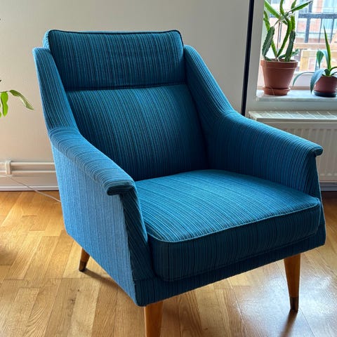 Säljer min fina fåtölj pga flytt. I top skick. Tyg sammet. Finns hund i hemmet.