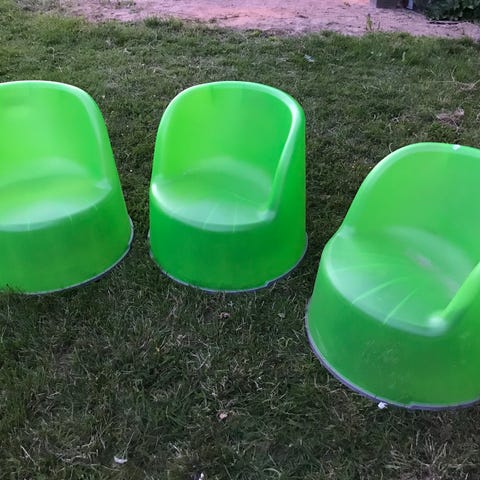 10 stycken JardinPlaststolar trädgårdsstolar i blått och grönt. Stolarna har armstöd och hög rygg med ribbad design. Lämpliga för användning utomhus i trädgård, på altan eller uteplats. Stolarna är stapelbara för enklare förvaring när de inte används.