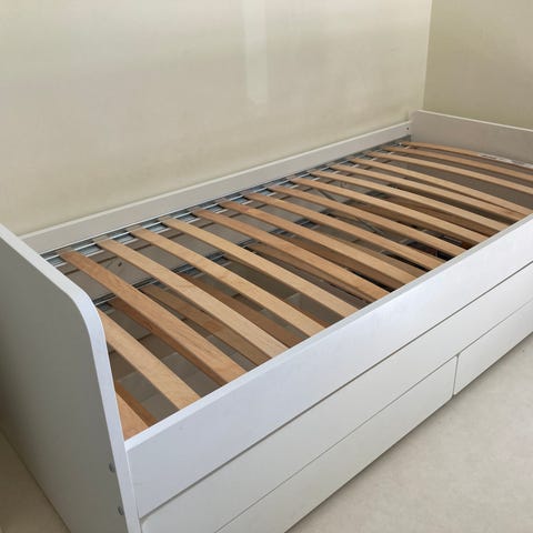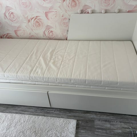 Vit IKEA Hemnes dagbädd med förvaring och madrass