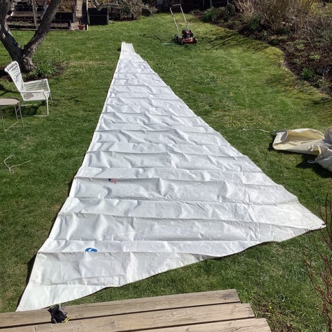 Vindskydd till husvagn/husbil. Ingår sektioner med presenningstyg och insydda fönster i klar plast samt tillhörande stolpar enligt bifogad ritning. Passar som avgränsning och insynsskydd vid husvagnsuppställning, exempelvis på campingplats. Levereras hopvikt i säck tillsammans med monteringsritning.