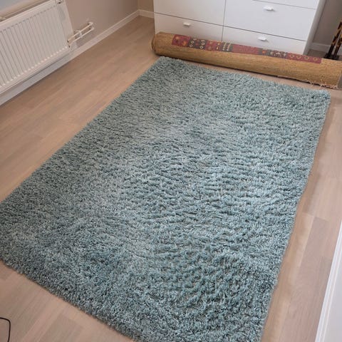 Ljusgrå tålig matta, 133x190 cm. Mjuk med lång lugg. Modell ”Ayla” från Rusta.