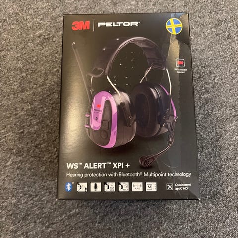 3M Peltor WS Alert XPI hörselskydd med Bluetooth i rosa och svart utförande. Modellen är ett kåpskydd med huvudbygel och inbyggd elektronik. Hörselskyddet har trådlös anslutning via Bluetooth för uppkoppling mot mobil eller annan enhet, samt reglage på kåpan för styrning av funktioner. Levereras med originalkartong och manual enligt bild.
