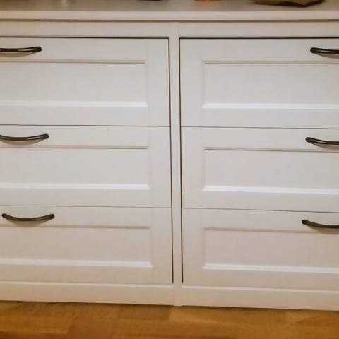 2 vita IKEA byråer. Går att stapla på varandra så som på fotot.