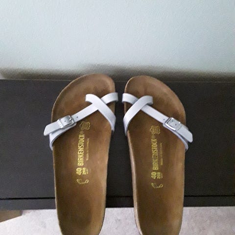 Birkenstock sandaler i storlek 41. Ganska slitna men fungerar utan några problem.