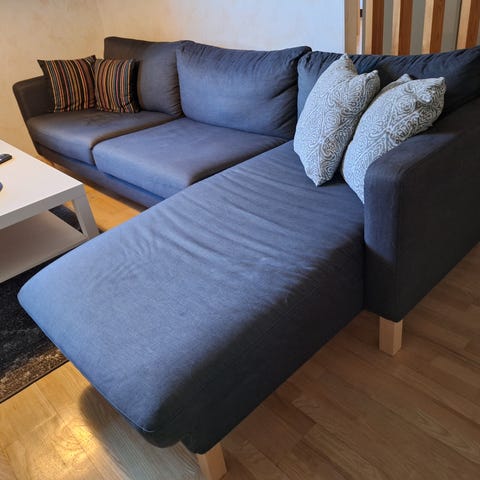 Säljer en soffa som vi inte behöver längre pga flytt, man kan se lite fläckar men säkert inget som en duktig kan ta bort, man kan nog ta av klädseln för tvätt, ta med bärhjälp och släp.