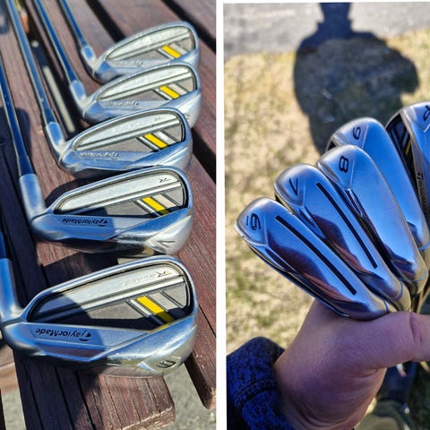 TM R7 järnset; Sandw, 9, 8, 7, 6, 5; MaxPlus Wedge 52 grader, Pitch Spalding.