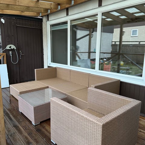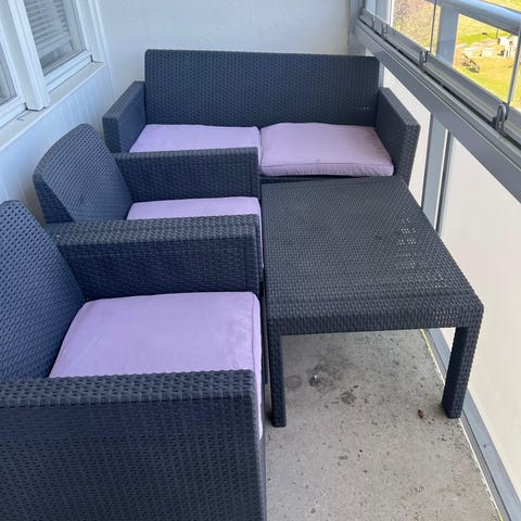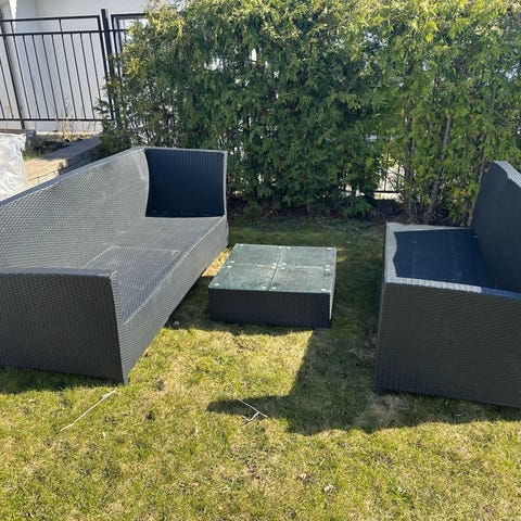 Utan märkesnamn loungegrupp utomhus bord och soffor konstrotting brun