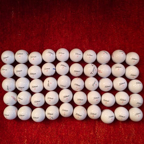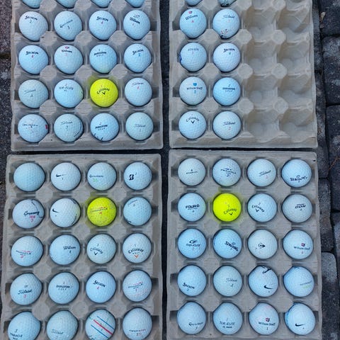 80 st golfbollar säljes i sämre skick. Främst Top Flite och andra märken som Maxfli och Strata. På grund av skicket och de olika märkena erbjuds bollarna billigt.